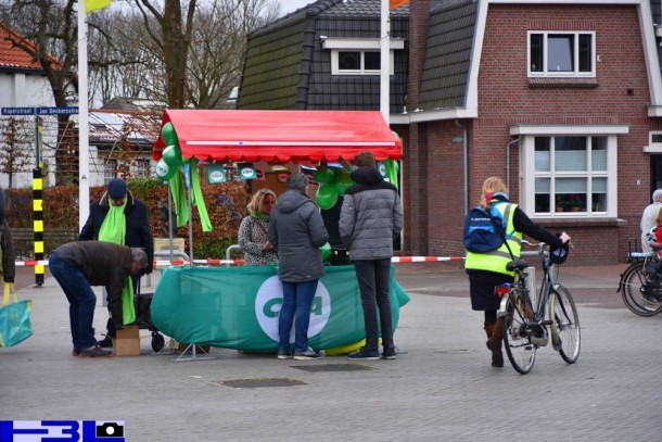 Ook de acht politieke partijen waren present met een kraampje om de laatste dagen voor de verkiezingen nog even 'in the picture' te komen. Ook daar warm aangeklede lijsttrekkers en kandidaten van de lijst met warme dranken en de niet te missen paaseitjes, appels en bonbons. Winkeliers hadden de deuren geopend en leuke acties bedacht zoals een springkussen, een racesimulator en een heuse scheerbeurt in de winkel. Bij Tapperij De Zwaan kon men al inschrijven voor de tweede dorpsquiz en daar stroomden de eerste voorinschrijvingen dan ook al binnen.