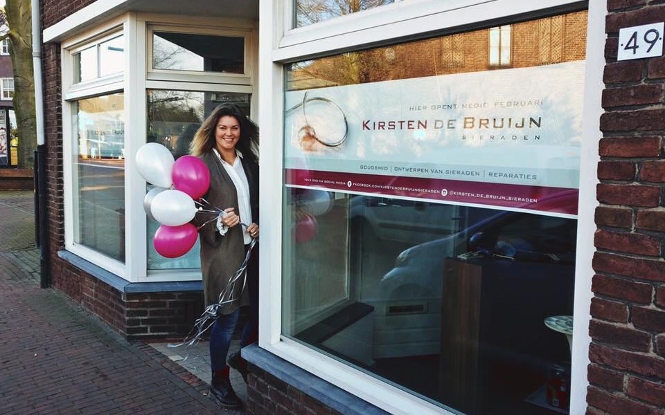 ''Naast mijn eigen collectie sieraden in goud en zilver, zullen er ook collecties van collega goudsmeden verkrijgbaar zijn. Wil je graag iets speciaals en helemaal naar eigen wens? Voor een uniek ontwerp van bijvoorbeeld trouwringen, herinneringssieraden, het omsmelten van oud goud en reparaties kun je uiteraard ook bij mij terecht'', aldus een enthousiaste Kirsten die haar droom ziet uitkomen. ''Het is een langgekoesterde wens om een eigen zaak te hebben en na het sluiten van edelsmid Rooijmans in Heeze zag ik de kans om het waar te gaan maken.''