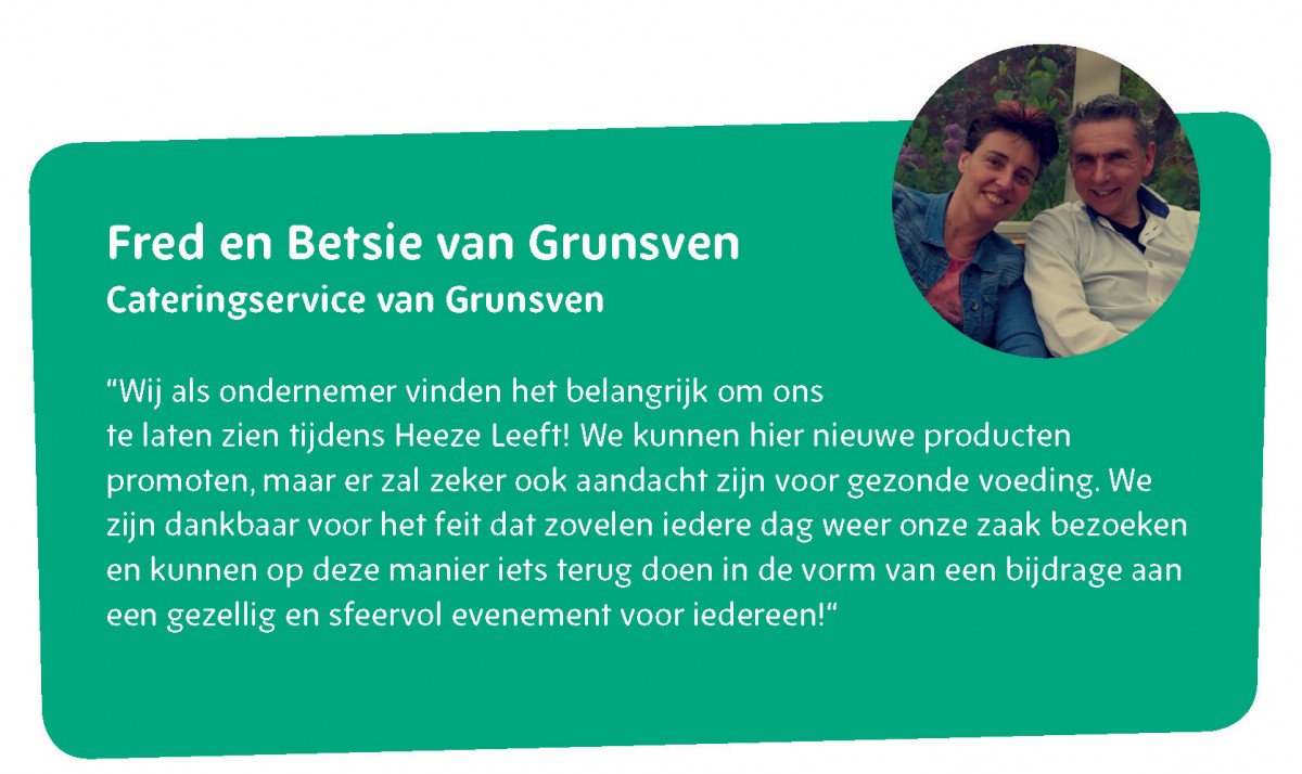 Heeze Leeft! is er voor iedereen. "Verenigingen, stichtingen en ondernemers kunnen zich hier perfect presenteren maar ook voor het 'winkelend' publiek is er vooral veel te zien en te doen. Het is de bedoeling dat de bezoeker achteraf kan terugkijken op een gezellige en sfeervolle middag'', aldus de organisatie. ''We denken bijvoorbeeld aan een circusworkshop of een dansworkshop waar de bezoeker in korte tijd iets kan leren en dit daadwerkelijk laat zien die middag. Maar ook bedrijven laten zien wie ze zijn en wat ze doen of maken. Dus niet alleen de HWV winkeliers en verenigingen, maar ook de ondernemers van het industrieterrein zullen er te vinden zijn.''